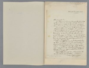 2 lettres écrites durant sa mission à Rome. Il transmet des lettres de cardinaux pour le Roi. « J'en envoyai aussi une de M. le comte Chiaramonsi, neveu du pape ; elle est de même restée sans réponse ; je crois que vous penserés qu'il serait à désirer qu'on put donner quelque témoignage de souvenir de cette attention, au neveu d'un pape modeste, qui n'a accordé aucune grâce à sa famille, pas même le titre de Prince, dont elle seroit plus susceptible que plusieurs autres familles papales [] ». Dans une seconde lettre, il adresse une médaille qui vient d'être frappée par un pensionnaire de l'Académie. « Il a désiré offrir au Roi, son bienfaiteur, une preuve de son application et de ses succès ; cet artiste mérite d'être encouragé. Vous trouverez, monsieur le Duc, dans cette dépêche, un Mémoire sur la famille Bonaparte, qui est à Rome [] ».