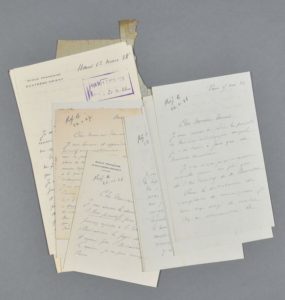 On joint 2 L.A.S. de Viktor Goloubev (1878-1945), au même, l'une à l'en-tête de l'Ecole Française d'Extrême Orient, « Le moral est excellent, on travaille ici d'arrache-pied [] » + 1 télégramme de Finot.