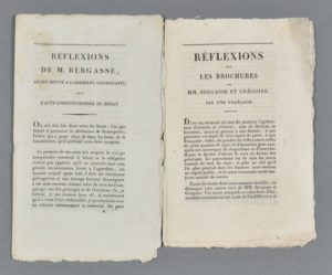 - Réflexions de M. Bergasse, ancien député à l'assemblée constituante sur l'acte constitutionnel du Sénat. Brochure de 16 pp. in-8.