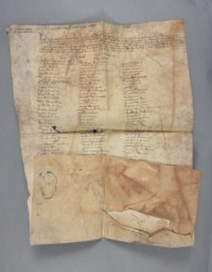 Rôle de montre d'armes faite à Ypres, en Flandre, en août 1489, de 50 hommes d'armes et 100 archers, faite par Charles de Poyanne pour le quartier d'avril, mai et juin 1489.