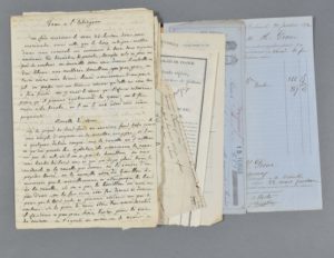 - 3 factures illustrées XIXe dont De Bauve « breveté de Sa Majesté Louis XVI » « fabrique de chocolats fins de toutes espèces ».