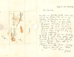 excursion, ils pensent aller juqu'à Carlsbad, afin de revenir de là via Schneeberg, où ils espèrent voir Carl et les siens. Ils seront à Schneeberg jeudi au plus tard. Ils seront heureux de les retrouver tous bien portants à la maison. Cela fait longtemps qu'il souhaite te rendre visite à Carl... « Wir haben einen Ausflug gemacht, denken heute von hier nach Carlsbad, um von da über Schneeberg zurückzureisen, wo wir dann Dich und die Deinigen zu sehen hoffen. Bis spätestens Donnerstag sind wir in Schneeberg. Wir würden uns freuen, Euch alle wohl und zu Hause zu treffen. Es ist ein langer Wunsch von mir, Dich einmal aufzusuchen »...