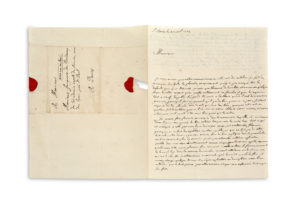 cachet de cire rouge (brisé). Très rare lettre de l'auteur de L'Art du facteur d'orgues. [Auguste-Denis FOUGEROUX DE BONDAROY (1732-1789), collaborateur de Duhamel du Monceau, botaniste et excellent dessinateur, a rédigé quatre monographies pour la Description des Arts et Métiers, à laquelle a collaboré Dom Bedos, dont L'Art du coutelier en ouvrages communs (1772).] Il lui renvoie son Art du coutelier : « J'ai fait des remarques sur toutes les planches, et assurement je n'y ai pas marqué tous les defauts que j'y ai trouvés. Je crois que l'honneur de la nation et meme en quelque façon le votre exige qu'on gratte entierement ces planches et qu'on les regrave tout a neuf. Le public s'en prend toujours à l'autheur quand il voit de mauvaises gravures ; parce qu'il sait en general qu'il y a de bons graveurs à Paris, surtout voyant d'autres planches dans les arts, qui sont très bien. Quoi que votre art en question soit le coutelier grossier, il n'en est ni moins utile, ni moins curieux, ni moins interessant, et il meérite d'etre aussi bien gravé que les autres ». Il a également fait plusieurs remarques sur la manuscrit, pour supprimer des « repetitions ou choses inutiles »... Il ajoute qu'il a « fait faire un banc de tour, qui est encore ches l'ouvrier qui la fait. C'est le 1er Roubo qui la dirigé. Ces poupées dont vous me parlés ne pourront pas y aller assurement. J'examinerai cela et j'y ferai faire tous les changements et reparations necessaires avant de faire transporter le tout ici. Il faut dailleurs faire derouiller l'arbre, & c. »...