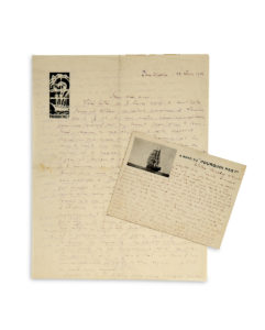 CHARCOT Jean (1867-1937) explorateur polaire.L.A.S. « JB. Charcot », Pantelleria 22 juin 1923, à son ami Raymond HOVASSE ; 2 pages in-4, vignette du Pourquoi pas ? (encre un peu pâle). Leur tournée ne devait durer que 4 jours, mais « comme la...