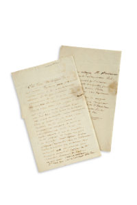 BRISSOT, « député à l'assemblée nationale ; 1 page et quart, et 1 page in-8, adresses (légères brunissures dues au cachet, petite galerie de ver marginale à la 1ère). Intéressantes lettres politiques, s'inquiétant des vacances dans les ministères, alors que la Patrie est menacée. Les lettres sont adressées à Jacques Pierre BRISSOT, dit Brissot de Warville (1754-1793), journaliste et homme politique, député à l'Assemblée nationale et chef de file des Girondins. Condorcet s'inquiète de la vacance des postes de ministres récemment répudiés (Narbonne, à la Guerre et Lessart, aux Affaires étrangères). En effet, l'Autriche menace les révolutionnaires d'une intervention armée destinée à venir en aide à la monarchie française. Condorcet fait également référence aux émigrés rassemblés à Coblence qui ont formé une armée contre-révolutionnaire. Il cite Louis, comte de Narbonne-Lara (1755-1813), ministre de la Guerre du 7 décembre 1791 au 9 mars 1792 ; monarchiste convaincu, il s'enfuit après les événements du 10 août 1792. François-Xavier-Marc-Antoine, abbé de Montesquiou (1756-1832), élu aux États généraux par le clergé parisien, il s'opposera aux réformes, et émigrera en Angleterre après les événements du 10 août. Anne-Pierre, marquis de Montesquiou (1739-1796), général en chef des armées du Midi et des Alpes depuis avril 1792, émigrera en Suisse en novembre 1792. Claude-Antoine-Nicolas Waldec de Lessart (1741-1792), ministre des Affaires étrangères depuis 1791, il est accusé de trahison par les Girondins parce qu'hostile à la déclaration de guerre à l'Autriche (1792). « C'est l'abbé Montesquiou qui a fait renvoier Narbonne, et conduit l'intrigue auprès du Roi avec le nouveau ministre. On dit que l'intention du representant non élu est de ne pas nommer de ministre des affaires étrangeres jusqu'à ce que Lessart soit jugé. Si cela etait vrai je n'y verrais de remede légal que l'art. XVIII de la section de la regence mais comme ce remede exige beaucoup de tems, ne serait-ce pas le cas d'une deputation au Roi pour l'inviter à completer son ministere »... Il évoque quelques-uns des arguments à avancer et signale que c'est le frère de l'abbé de Montesquiou qui commande dans le Midi... Narbonne préfère qu'ils se réunissent chez Condorcet ; ils y seront plus tranquilles. « Vous savez que les émigrés quittent Coblentz, et que l'empereur a fait notifier au bailli d'Eternheim qu'il ne devait pas compter sur lui s'il continuait a souffrir des rassemblemens »...