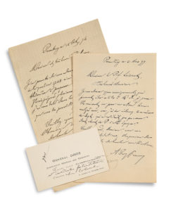 problème 1748 ainsi que l'annonce d'un théorème à proposer. J'avais préparé plusieurs autres solutions, mais j'ai constaté dans le numéro d'octobre que vous les possédiez déjà en portefeuille »... On joint une carte de visite avec 3 lignes autogr. du général DROZ.