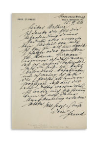 FREUD Sigmund (1856-1939)L.A.S. « Freud », Semmering 15 septembre 1926, à Arthur FISCHERCOLBRIE ; 1 page in-8 à son en-tête Prof. Dr. Freud ; en allemand. À un jeune poète. [Arthur FISCHER-COLBRIE (1895-1968), était poète, critique et...