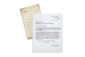 Dr Heinrich MENG (1887-1972), qui était son ami, et qui s'était donné beaucoup de mal pour que son père obtienne le prix Nobel ; elle a toujours regretté que cela n'ait pas marché ; elle ignorait que Meng ait fait ensuite un appel à ce sujet, mais elle n'a jamais vu ce texte, Meng n'ayant pas correspondu avec son père là-dessus, et ne l'ayant pas tenu au courant de ses démarches. On joint une L.A.S. de Raymond POINCARÉ à un ami Maurice : il doit rentrer à Paris pour la discussion de la loi de 1895 (1 p. ½ in-8 à en-tête Chambre des députés).