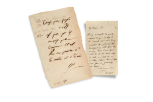 L.A.S. de son disciple et collaborateur Jean Gaspard SPURZHEIM (1776-1832), à Mr. Bish (1 page in-8, adr.,en anglais). Étant occupés à faire leurs malles ils le prient de les excuser de ne pas avoir le plaisir de déjeuner avec lui ce matin. Ils lui rendront visite chez lui un peu avant deux heures.