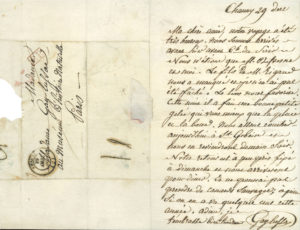 GAY-LUSSAC Joseph-Louis (1778-1850) chimiste et physicien.L.A.S. »Gay-Lussac », Chauny 29 décembre, à SA FEMME, au Muséum d'histoire naturelle à Paris ; 1 page in-8, adresse. Il a fait un bon voyage avec M. Defresne : « Le fils de M. Rigaud...