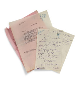 LE CORBUSIER Charles-Édouard JEANNERET dit (1887-1965) architecte.L.A.S. « Le Corbusier », 15 août 1935, à Pierre ABRAHAM ; 1 page et demie in-8 à l'encre violette. Il a reçu la circulaire du 8 août. Il donne son adresse « 35 rue de Sèvres...