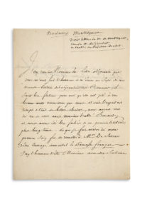 MONTESQUIEU Charles de Secondat, baron de La Brède et de (1689-1755) écrivain.L.S. « Montesquieu », Bordeaux 19 octobre 1748, à Évrard TITON DU TILLET à Paris ; 1 page et quart in-4, adresse avec marque postale et cachet de cire rouge à ses...