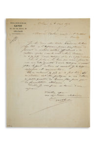 [PASTEUR Louis (1822-1895)]Apostille a.s. « L.P. » sur une L.A.S. de GAVOT, Orléans 4 août 1876, à lui adressée ; 1 page in-4, en-tête Brasserie Gavot 18, rue du Héron, Orléans. Gavot recopie une phrase des Études sur la bière, concernant...