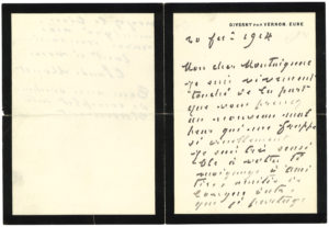 MONET Claude (1840-1926)L.A.S. « Claude Monet », Giverny 20 février 1914, à son cher MONTAIGNAC ; 1 page et demie in-8 à son adresse Giverny par Vernon Eure (deuil). Réponse à des condoléances pour la mort de son fils aîné Jean. « Je suis...