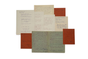 BOUSQUET JOË (1897-1950)Ensemble de neuf feuillets manuscrits. S.d., divers formats. Probablement des notes de travail, esquisses de textes et de poèmes. - L'ère de Rose au loin Création d'un style, évocation de son travail : « Rassemblement...