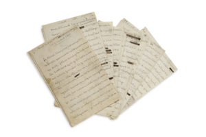 en tête du manuscrit), Sand est allée se promener dans les bois ; elle note dans son Agenda : « Napoléon III est mort hier - dernière heure. Télégramme dans le journal ce matin ». Les feuilletons d'Impressions et souvenirs de Sand ont été publiés dans Le Temps à partir du 22 août 1871 ; le 22 premiers (jusqu'au 11 décembre 1872) parurent en recueil chez Michel Lévy en 1873. La suite des feuilletons du Temps, dont ce premier, « Dans les bois », fut publiée, avec quelques autres textes, dans le recueil posthume Dernières pages (Calmann-Lévy, 1877). Le manuscrit, à l'encre brune au recto des feuillets, présente de nombreuses ratures, lisibles sous la large biffure, et des additions interlinéaires. L'apostrophe finale est récrite sur un béquet, collé sur la version primitive (les toutes dernières lignes manquent). Le texte commence par une promenade dans les bois et une étude de botanique : « Le temps, toujours admirable, nous a permis de retourner dans les bois. J'étais curieux de définir la scabieuse, qui y fleurit encore en plein janvier. Et je ne l'ai pas définie. Elle offre des caractères qui ne s'accordent avec la description exacte d'aucune espèce enregistrée dans les nomenclatures, et, comme je n'ai pas la prétention d'en faire une espèce nouvelle, comme elle est probablement des plus vulgaires, je suis forcée d'attribuer les anomalies qu'elle me présente aux anomalies de la saison, qui lui procure une floraison intempestive »... Etc. Mais elle n'a pas pris la plume pour parler botanique ; dans sa promenade, elle a pensé à NAPOLÉON III qui vient de mourir, mais cet « homme funeste » n'existait plus depuis trois ans. Elle évoque sa correspondance avec le prisonnier de Ham, qu'elle retrouvera à l'Élysée : « j'ai été complètement abusée par lui et, ensuite, me croyant jouée, je n'ai plus voulu le revoir. [...] Mais j'ai continué à lui écrire quand j'espérais sauver une victime, à commenter ses réponses et à l'observer dans tous ses actes. Je me suis convaincu qu'il n'avait voulu jouer personne ; il jouait tout le monde et lui-même. Il croyait à ce qu'il disait [...] L'exercice du pouvoir absolu aidant, cette illusion de jouer à pile ou face avec les événements devint une monomanie, et le fatalisme tranquille et patient prit toutes les apparences d'une force et d'une habileté. L'habileté était nulle. L'homme était naïf sous son air contenu et réfléchi. Il ne posait pas comme son oncle. Il n'avait pas appris à se draper dans la toge antique. Il était petit, voûté, flétri, et ne cherchait point à paraître majestueux. [...] Homme à principes erronés, il gouverna une nation qui manquait de principes et qui mettait un idéal de prospérité romanesque à la place de la vraie civilisation, le succès et la chance à la place du droit et de la justice »... Elle évoque Victor HUGO lançant « ses anathèmes à Napoléon le petit. Mais le grand poëte romantique n'eut pas ici le sens suffisant de la réalité. Son chef-d'oeuvre restera comme un monument littéraire, il n'a pas de valeur historique. [...] Il s'est cru l'instrument de la Providence, il ne fut que celui du hasard. Le parti, d'abord minime et tout à coup immense, qui le porta au faîte du pouvoir ne fut même pas un parti [...] Ce fut un essaim d'aventuriers d'abord, et puis une réunion d'intéressés spéculant sur l'aventure, et puis l'engouement soudain des masses, dégoûtées d'une république en dissolution »... Etc. Et elle conclut ce portrait, « reconstruit en me promenant dans les bois », en républicaine : « je crois qu'il y aurait enfin à reconnaître que le meilleur des hommes peut être le plus funeste des souverains, que remettre les destinées de tous à un seul est l'acte le plus coupable et le plus insensé que puisse commettre un peuple civilisé. Ah ! nous sommes des Français du 19me siècle, et nous voulons encore nous payer “des enfants du miracle” : Henri V, le futur sauveur ; des “hommes du destin”, Napoléon le foudroyé ; des empereurs à mission, Napoléon le néfaste ! Continuons ! Après Waterloo et Sedan, il y a encore des abîmes [pour nous reposer de nos gloires, de nos splendeurs et de nos fêtes. Ces toutes dernières lignes manquent à la fin du manuscrit.] »