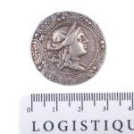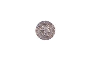 Macédoine sous domination romaine 158-149 av. JC. Tétradrachme arg. 16,55 gr. Buste d’Artémis entouré d’un bouclier macédonien. R/ Massue dans une couronne de chêne. P. 997, BMC 8.