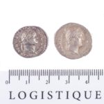 2 Deniers : Titus 61-81 ap. JC. arg. 3,27 gr. Sa tête laurée à dr. R/ Ancre avec un dauphin. C. …