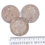 3 monnaies : Louis XV Ecus au bandeau (3 ex.) 1745 C Caen 29,25 gr. 1765 L Bayonne 28,83 gr. 1766 …