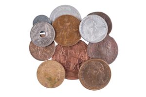 13 monnaies : Louis XVI Sol 1791 W Lille, Monneron de 5 Sols An IV 1792, 5 centimes An 8 AA Metz, 20 Centimes Fer 1944, 2 francs arg. 1914 C, Colonies Françaises Charles X 5 et 10 centimes 1925 A et divers.