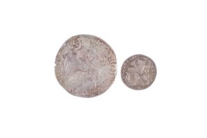 2 monnaies : Pays-Bas Provinces Unies Daldre au lion 1640 Utrecht arg. 26,18 gr. Dav. 4863. …