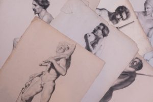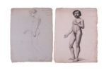 ANONYME 9 Etudes de nus masculins 1852-1853 Dessins au crayon et fusain sur planches. 58 x 44 cm.