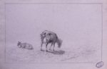 Carton à dessin contenant environ 70 dessins au crayon et au fusain.