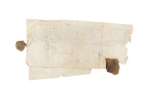 Pièce signée « Louis », Fontainebleau le 3 juin 1636 ; vélin in-folio (24 x 53 cm), contresignée par son secrétaire Claude Bouthillier (1584-1562). Fente en bas à droite et petits manques dans le texte dans la partie droite. Fragment de sceau de cire brune aux armes de France en bas à droite. Cette pièce est reliée à la pièce suivante signée « Le Cardinal de Richelieu » par le cordon d’un sceau de cire brune aux armes de France (fragment).