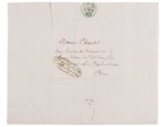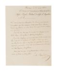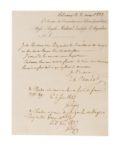 On joint 1 L.A.S. Charlet à son frère Vichy juillet 1824 1 p.in-4 et 1 pièce autographe signée “Th. Charlet” : “Je soussigné, reconnais que toutes les sommes que M. Alexandre Charlet mon frère a reçues pour moi de la Banque de France, en vertu de ma procuration pendant l’année mille huit cent vingt-trois, ont été par lui versées à ma caisse pour le service de Madame La Dauphine au moyen de quoi je le quitte et décharge de toute chose à ce sujet. A Paris, le deux janvier mille huit cent vingt-quatre”.