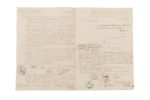 - Congé absolu manuscrit, 3 p. « Armée des Pyrénées Occidentales » 5e rgt d’artillerie, Hernouy an 3. Nombreuses signatures dont celle du général VERNIER. Cachet à l’encre, apostille autographe signée du général LAROCHE DUBOUSCAT, apostille autographe signée du général LESPINASSE, apostille autographe signée du général Henry FREGEVILLE. Rare document avec signatures de 4 généraux.