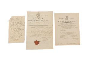 -1 lettre vignette, entête imprimé « les représentants du peuples envoyés dans le département des BDR et du VAR”. MARSEILLE an 3. Signée J. MARIETTE et CHAMBON (LA TOUR).