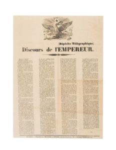 Discours de l'Empereur adressé aux sénateurs et aux députés. Exposé de la situation de l’Empire (NAPOLÉON III). Dimensions : 38 x 53 cm.