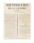 Affiche sur la réorganisation des grenadiers et chasseurs de la vieille garde 2 mois après la chute de NAPOLÉON. Circulaire adressée aux préfets. Très intéressant. Dimensions : 36 x 46 cm.