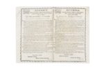Jugement rendu du conseil de guerre des troupes françaises stationnées dans la Cisalpine. Imprimée à droite en Italien, à gauche en Français. Au sujet d’homicide commis par un sapeur de la 101ème ½ brigade sur un perruquier à Brescia ; condamné à 20 ans de fer. Dimensions : 40 x 52 cm.