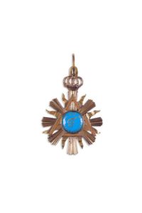 [FRANC-MAÇONNERIE] Beau bijou allemand en bronze, XIXème siècle Email bleu au centre avec nom …