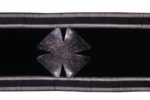 Velours noir, bordures fils argent et rosaces avec symboles.