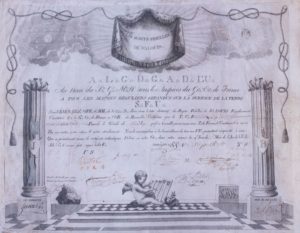 [FRANC-MAÇONNERIE] Très beau diplôme de Maître sur parchemin de la loge “Les Sujets Fidèles de St Louis”, Orient de Marseille, 1820