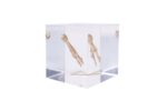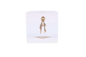Cube décoratif en plexiglas pour bureau. Contient deux outils maçonniques dorés : compas et triangle. Bon état.