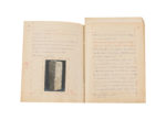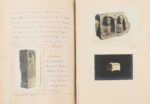 Cahier d’écolier (22,5 x 17 cm) de 107 p.in-4 écrites à l’encre, étude destinée à une publication enrichie de 68 photographies in et hors texte de pièces archéologiques certaines par le studio Tarniquet encollées sur planches de papier japon. (Divers formats 17,5 x 12 cm à 25,5 x 19 cm). Dans sa préface l’auteur rend hommage à Mrs Sabatier, Durand et Noguier à l’origine de la fondation du musée installé dans le cloître de l’église St Nazaire en 1866. Cette étude est consacrée aux origines de Béziers, la période Celtibérienne, la période Romaine, la Fondation du Musée lapidaire, la période Vicomtale et Royale. Chacune de ces parties est documentée de photographies de bornes, autels, inscriptions funéraires, restes d’édifices romains, sarcophages chrétiens, inscription juive, monuments édifiés du VIIIe au XVIe siècle…