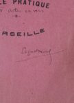 Cahier d’écolier de l’Ecole Pratique Marseille, in-4 broché (22 x 17,5 cm), couverture rose d’époque usagée, 142 pages écrites à l’encre sur papier ligné et 68 pages blanches. Quelques corrections autographes, petites déchirures et manques en bordure des marges sans atteinte au texte.