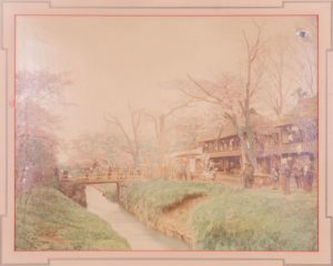 Paysage de cerisiers en fleurs, Japon, c. 1895 Grand tirage albuminé rehaussé en couleur, …