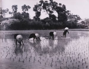 -On joint 8 tirages argentiques 18 x 24 cm, c. 1960 (vues de rizières, guerre, marché…)