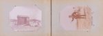 Album oblong (14 x 20 cm), reliure percaline rouge, titre doré sur le dos. 50 tirages argentiques avec légendes et dates manuscrites à l’encre.