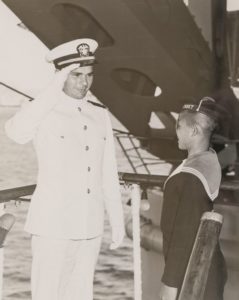 Visite des élèves orphelins de l’école Courbet à bord du porte-avion USS Randolph,12 juin 1954.