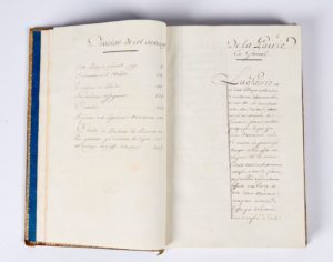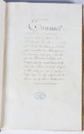 [MANUSCRIT - PAIRIE] - Travail de MM. les Commissaires nommés par l’Arrêt du Parlement du 3. [mars] 1764. Les Princes et Pairs y sceants, pour recueillir les Principes et les faits tendants a établir que le Parlement de Paris est uniquement et essentiellement la Cour des Pairs, et dont le dépôt a été ordonné par l'arrêté de la Cour du 29. may 1764. Les Princes et les Pairs y sceants - Manuscrit calligraphié de la 2nde moitié du XVIIIe siècle en 1 volume petit In-folio - Titre avec table au verso, 327 pages - Reliure de l’époque veau glacé havane moucheté (petit travail de ver au coin inférieur du 1er plat, 1 épidermure au 2nd plat, 2 coins émoussés) - Dos à nerfs orné - Pièce de titre (refaite au XIXe siècle) maroquin bordeaux - Tranches jaunes - Belle écriture bien lisible à l’encre noire - Cachet ex-libris couronné en bas du titre : Bibliothèque du château de La Roche-Guyon.