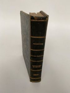 [MANUSCRIT - PHILOSOPHIE] - Cours manuscrit XIXe siècle de philosophie titré au dos Baccalauréat ès-lettres. Auteurs français - 1 volume In-8° - Environ 200 pages sur environ 400 feuillets à l’encre noire bien lisible - Reliure de l’époque demi-chagrin noir (coins et coupes usés, mors fendus) - Dos lisse orné, titré et daté or (1865) - Bon intérieur