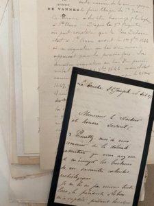 On y joint : Le tirage d’épreuve de l’ouvrage de Closmadeuc intitulé Vénus de Quinipily (avec corrections manuscrites de l’auteur) auquel on joint les photographies originales illustrant l’ouvrage ainsi qu’1 lettre autographe signée de son éditeur - On y joint : 1 important ensemble de lettres autographes signées adressées à Closmadeuc dans ses fonctions de président de la Société Polymathique du Morbihan - On y joint : 1 important dossier contenant de nombreuses notes manuscrites sur Vannes : le Parlement de Vannes, le château Gaillard, Gilles de Rays, le Papegault, la tour du Connétable, … et sur l’architecture de La Roche Bernard, ainsi que divers échanges épistolaires - On y joint : 1 ensemble de lettres autographes signées de l’historien Henri Martin (1810-188) et de sa veuve - On y joint : 1 manuscrit inédit intitulé De la façon singulière dont on met à profit les travaux de la Société Polymathique du Morbihan à Paris et ailleurs daté de 1867 - On y joint : 1 important ensemble de lettres autographes signées personnelles de Gustave de Closmadeuc et diverses correspondances de membres de la Société Polymathique du Morbihan.