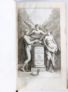 [BEAUX-ARTS] - PILES (M. de) - Cours de peinture par principes - Paris ; Jacques Estienne, 1708 - 1 volume In-12° - Titre frontispice gravé et 2 planches gravées hors texte (manque marginal à l’1 d’entre elle) - Reliure de l’époque veau brun moucheté (2 coins émoussés, plats quelque peu frotté) - Dos à nerfs orné (coiffe supérieure accidentée) - Pièce de titre maroquin havane - Tranches rouges - Bon exemplaire en 1ère édition.