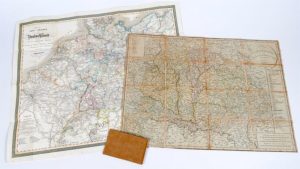 [CARTES GÉOGRAPHIQUES] - Ensemble de 2 cartes : GÖTZE (F.) - Charte von Ungarn, Siebenbürgen - Weimar ; Des Geograph Instituts, 1804 - 1 carte géographique gravée de la Hongrie, Transylvanie en langue allemande, aux contours colorés à l’époque, titre en haut à droite, légende en dessous ainsi qu’en haut à gauche, échelle en bas à droite - Entoilée - 44,50x63,50 cm - Bon état - [ANONYME] - Neueste Post-Charte von Deutschland […] fur Extraposten, Couriere, Diligencen, u Eilwägen - Nürnberg ; Schneider & Weigel, 1836 - 1 carte géographique aux contours colorés à l’époque sous chemise cartonnée - Titre en haut à gauche, légende en bas à gauche, tableau de distances entre ville en bas à droite - Quelques petits trous aux pliures, bon état sinon cela.