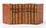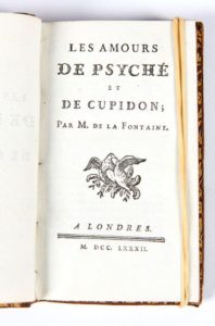[ÉDITIONS CAZIN] - Ensemble de 5 ouvrages en 9 volumes In-18° : LA FONTAINE (Jean de) - Les amours de Psyché et de Cupidon - Londres ; Sans nom, [Paris ; Cazin] 1782 - 1 volume - Sans le frontispice par Marillier - PASCAL - Pensées. Avec les notes de Voltaire - 2 volumes - Londres ; Sans nom [Paris ; Cazin], 1785 - 1 portrait frontispice gravé - CONDORCET (Marquis de) - Vie de Voltaire, suivie des Mémoires de Voltaire, écrits par lui-même - Londres ; Sans nom, [Paris ; Cazin], 1791 - 2 volumes - GRAFIGNY (Madame de) - Œuvres choisies ; augmentées des lettres d’Aza - Londres ; Sans nom, [Paris ; Cazin, 1783] - 2 volumes - HAMILTON (Comte Antoine) - Mémoires du Comte de Grammont - Londres ; Sans nom [Paris ; Cazin, 1781] - 2 volumes - Reliures de l’époque uniformes veau porphyre (quelques coins émoussés, quelques parties de coupes usées) - Plats encadrés d’1 triple filet doré - Dos lisses ornés (2 coiffes arasées, d’autres frottées) - Pièces de titre et de tomaison maroquin havane - Tranches dorées - Bel ensemble.